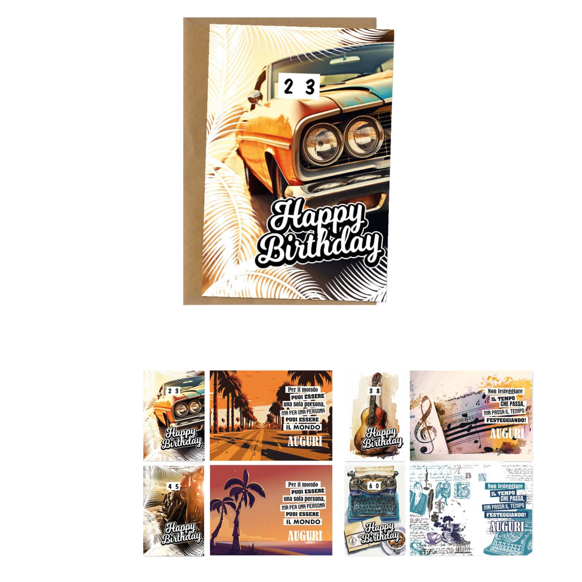 ED0453 BIGLIETTI AUGURALI MASCHILI CON RILIEVO E RUOTA NUMERI 1-99 ANNI (12PZ)