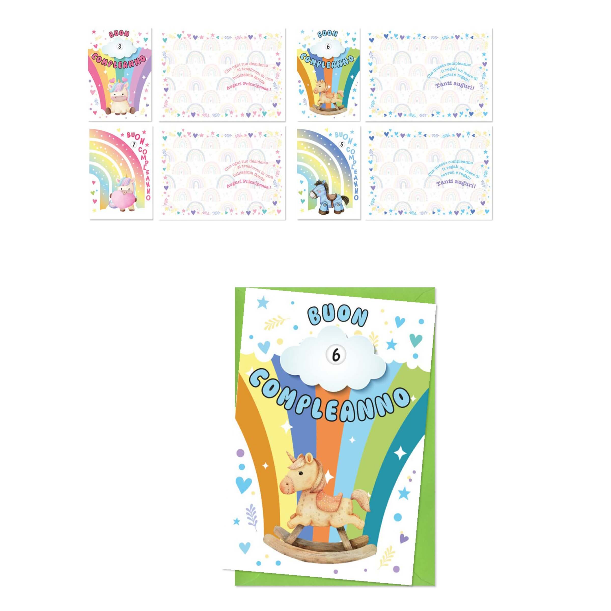 ED0627 BIGLIETTI AUGURALI HORSE GLITTER CON RUOTA NUMERI 2-10 ANNI (12PZ)