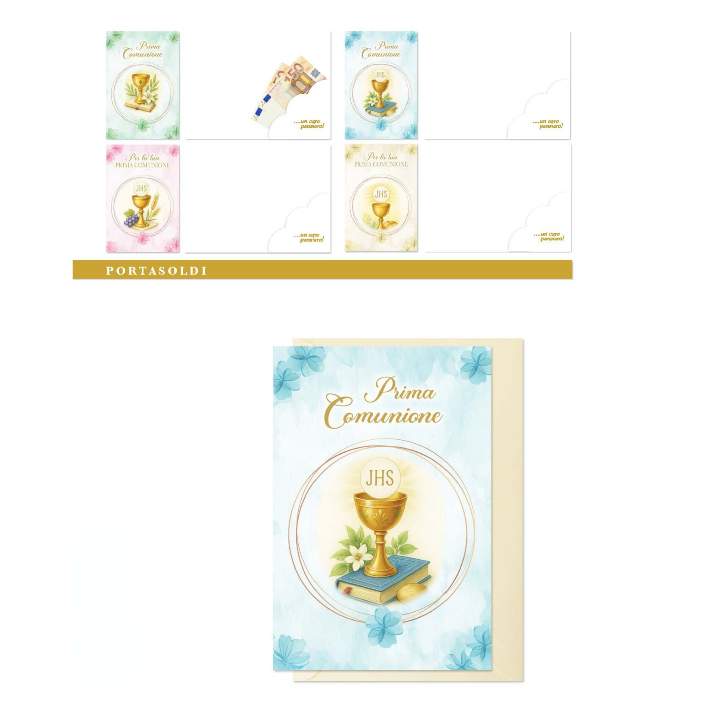 ED0565 BIGLIETTI PRIMA COMUNIONE CON PORTA SOLDI (12PZ)