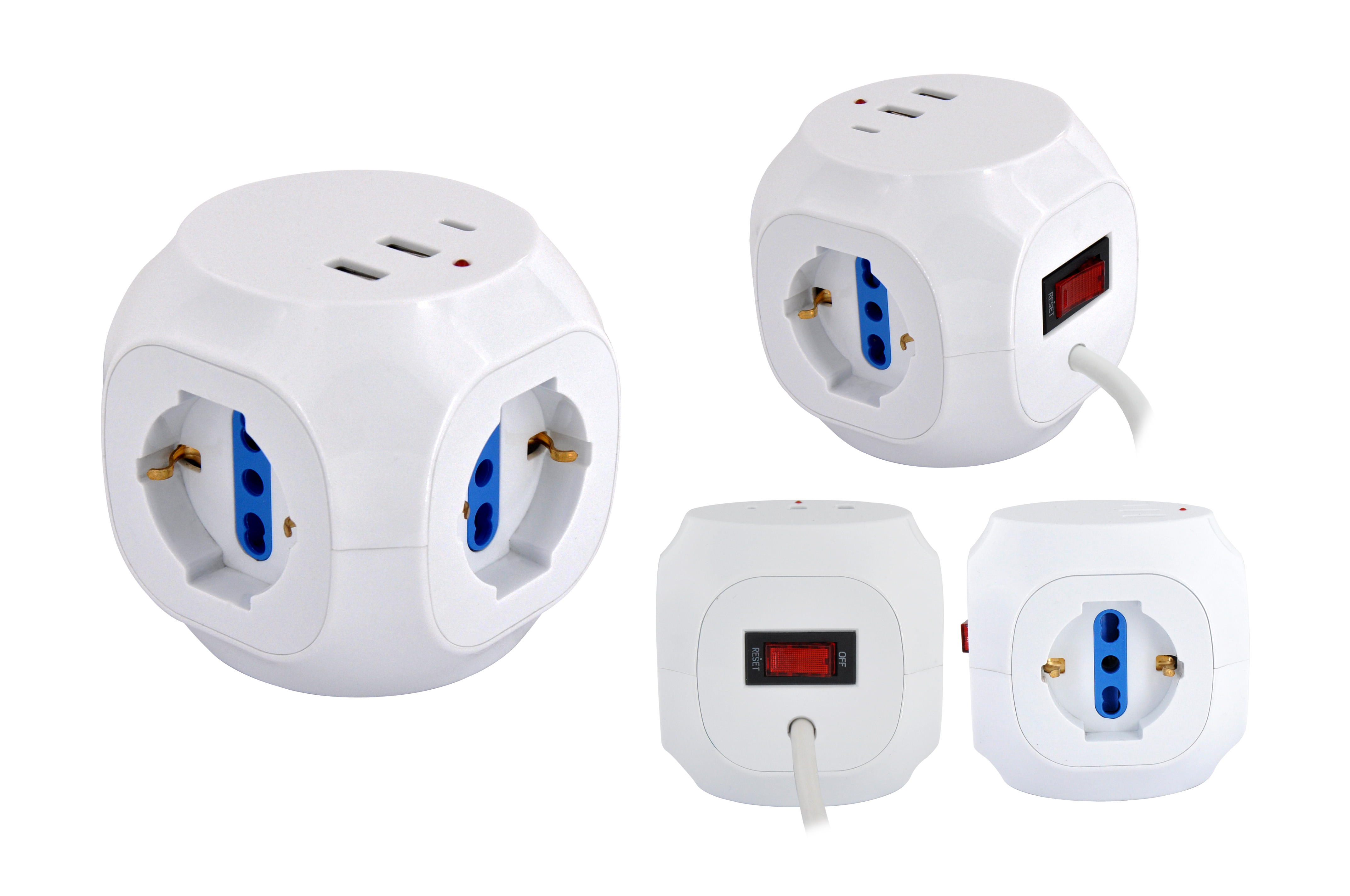 Design compatto, funzionalita evoluta e massima versatilita. La multipresa cubo ProPart e la soluzione ideale per gestire contemporaneamente dispositivi elettrici e dispositivi mobili in un unico punto di alimentazione ordinato, sicuro e ad alta efficienza. Il formato a cubo consente di ottimizzare lo spazio su scrivanie, postazioni di lavoro e ambienti domestici, permettendo un accesso comodo alle prese da ogni lato. Realizzata in materiale plastico autoestinguente, assicura resistenza meccanica e protezione termica affidabile anche in contesti di utilizzo intensivo.