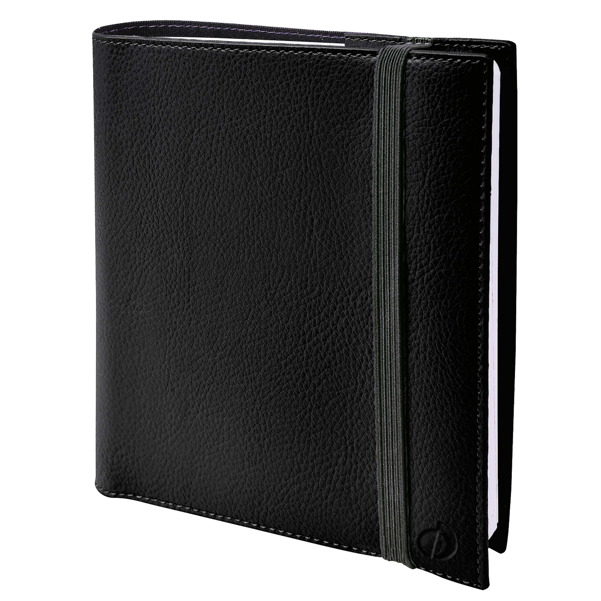 Agenda settimanale da ufficio rilegatura con spirale. Una settimana su due pagine. 13 mesi da dicembre a dicembre, rubrica amovibile, 32 pagine di appunti riposizionabili, anno-Planing pieghevole. Rivestimento in grana effetto pelle, chiusura con elastico verticale e cucitura a sellaio tono su tono. Carta bianca certificata PEFC, stampa in quadricromia. Edizione multilingue.