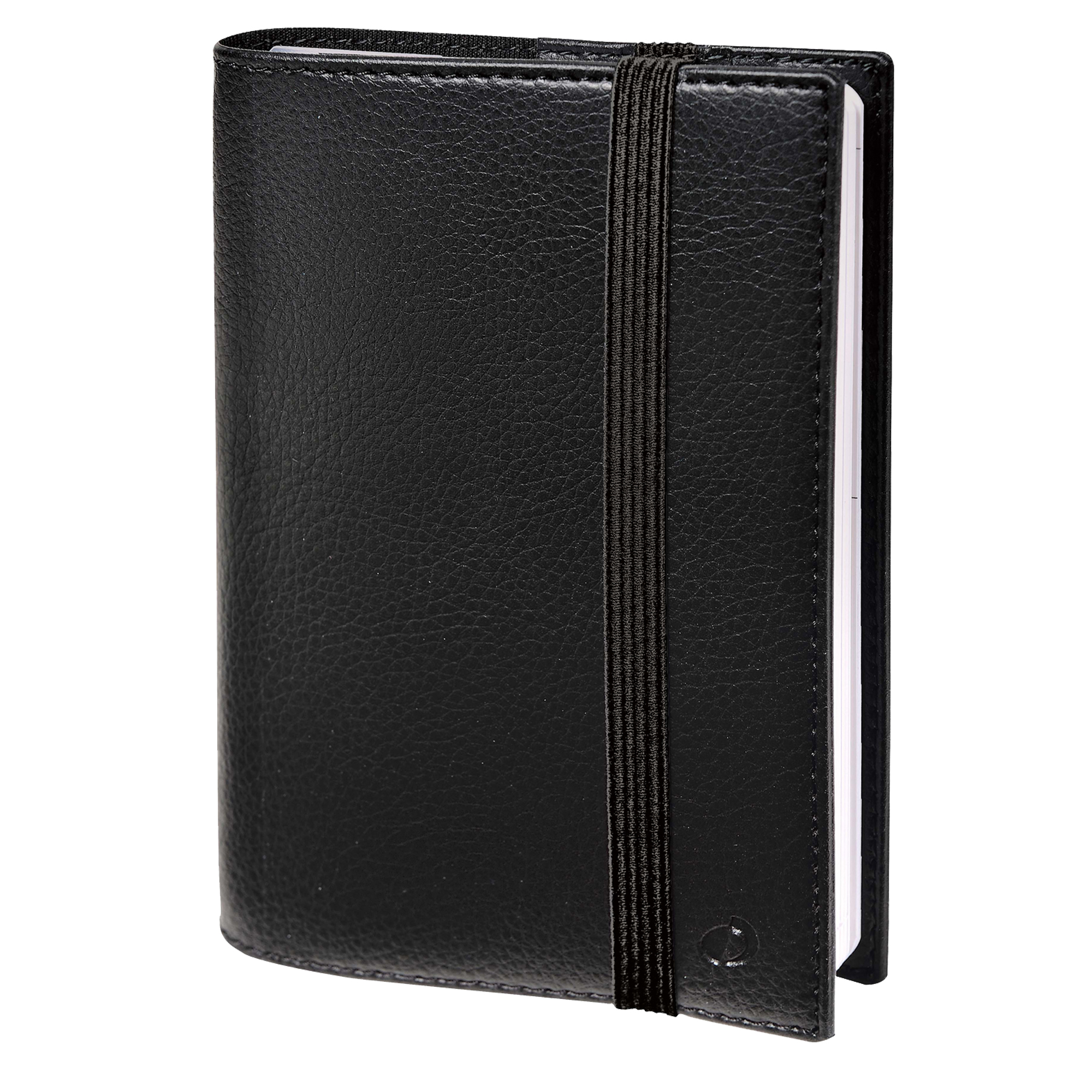 Agenda settimanale da ufficio rilegatura con spirale. Una settimana su due pagine. 13 mesi da dicembre a dicembre, rubrica amovibile, 32 pagine di appunti riposizionabili, anno-Planing pieghevole. Rivestimento in grana effetto pelle, chiusura con elastico verticale e cucitura a sellaio tono su tono. Carta bianca certificata PEFC, stampa in quadricromia. Edizione multilingue.