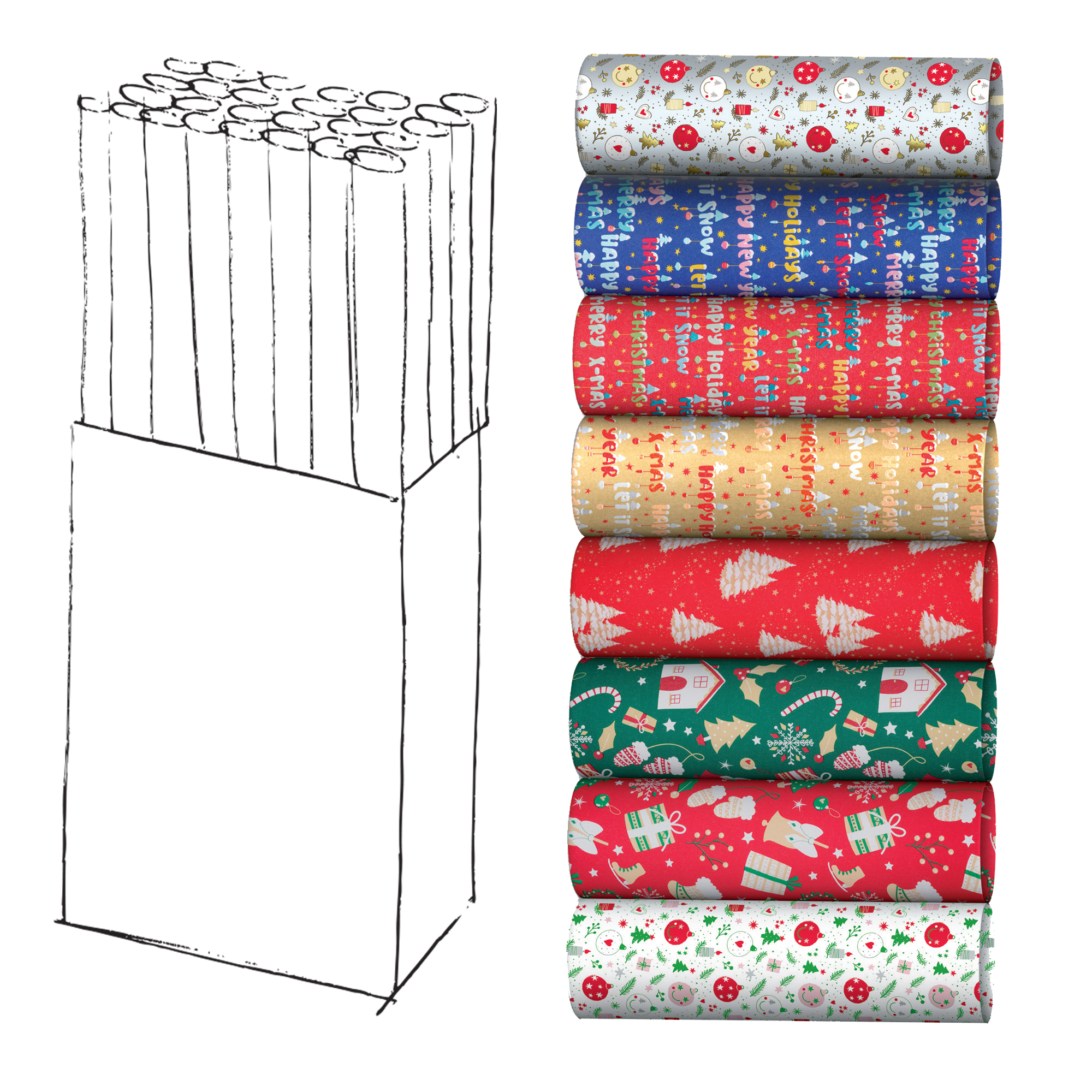 Carta da regalo 65gr/m2 riciclata al 100%. Fantasie natalizie assortite. Composto da 50