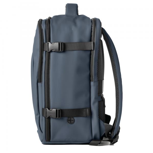 Zaino in gomma antipioggia, tasca frontale portachiavi e tasca frontale portadocumenti. Grande vano centrale con tasche porta accessori, presa esterna per cuffie. Tasca posteriore porta notebook 15. Tasca posteriore e nastro per inserimento su trolley. Tracolle e schienale imbottite e dotato di maniglia di trasporto. Cinghie laterali per compressione. Bagaglio a mano approvato Ryanair.