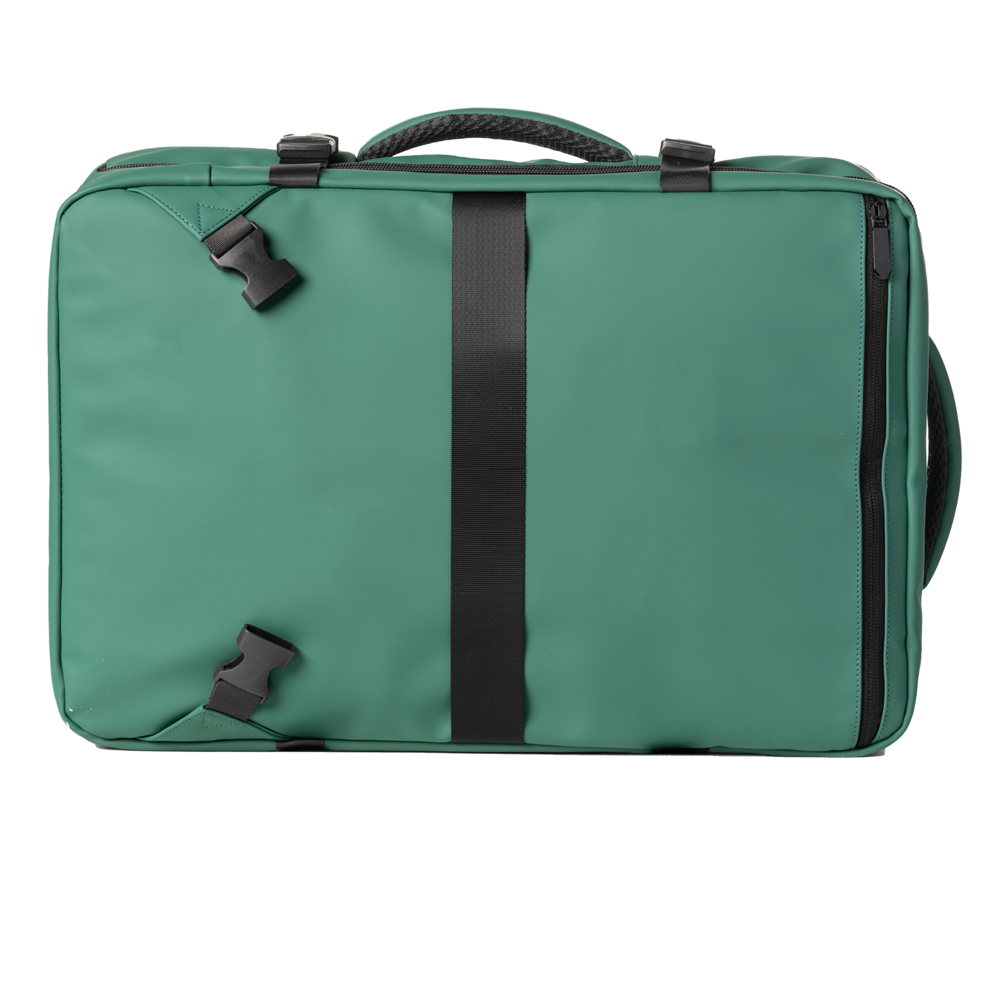 Zaino in gomma antipioggia. Tre tasche frontali portachiavi e accessori. Grande vano centrale con separatore in rete, tasca posteriore con porta notebook imbottito 15. Vano posteriore con tracolle imbottite estraibili, schienale dotato di nastro per trolley. Doppia maniglia imbottita per trasporto e cinghie laterali per compressione. Bagaglio a mano approvato EasyJet.