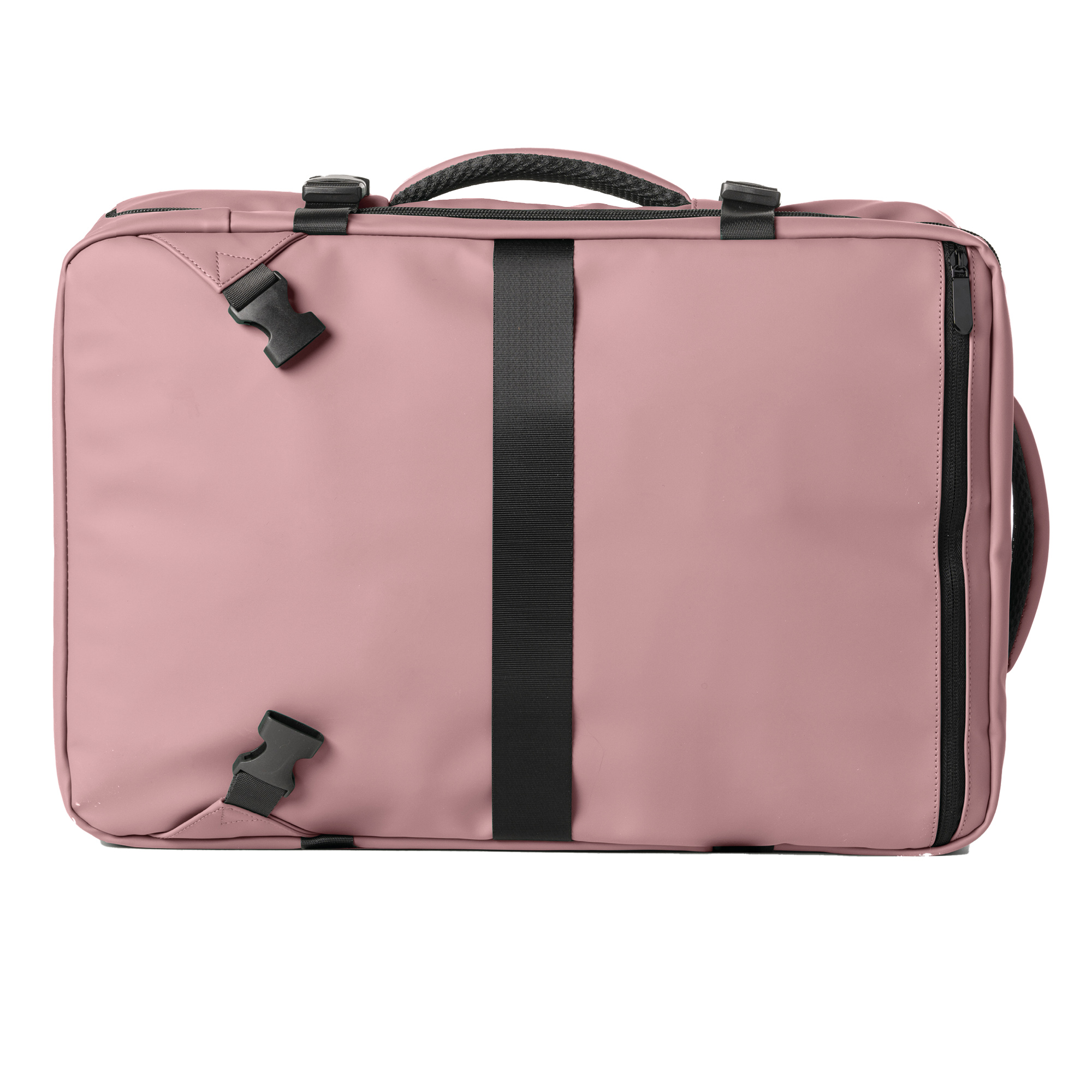 Zaino in gomma antipioggia. Tre tasche frontali portachiavi e accessori. Grande vano centrale con separatore in rete, tasca posteriore con porta notebook imbottito 15. Vano posteriore con tracolle imbottite estraibili, schienale dotato di nastro per trolley. Doppia maniglia imbottita per trasporto e cinghie laterali per compressione. Bagaglio a mano approvato EasyJet.