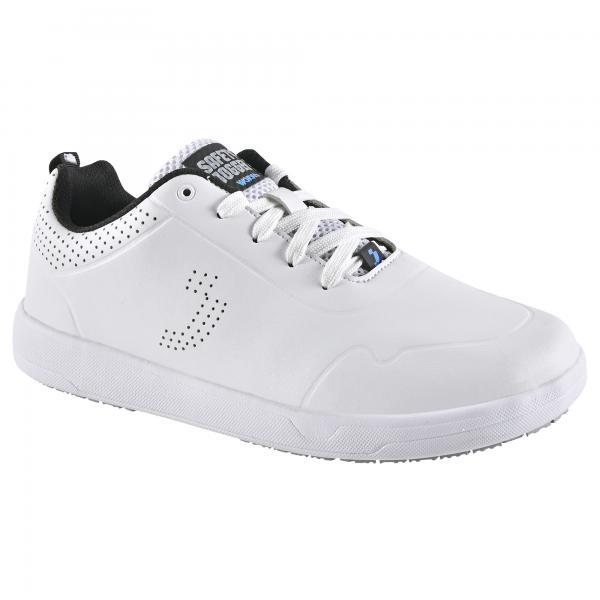 Sneaker da lavoro leggere e dalla vestibilitA' comoda con suola antiscivolo (metal free e plantare estraibile. Tomaia resistente all 'acqua e fodera in mesh 3D traspirante, ideale per chi trascorre molte ore in piedi grazie alla tecnologie di assorbimento di energia nel tallone e all'ampia calzata. Indicata per settore della ristorazione, pulizie e medicale. Numeri disponibili da 35 a 47.Certif icazioni: CE, ESD, ASTM F2892:2018, EN ISO 20347:2012.