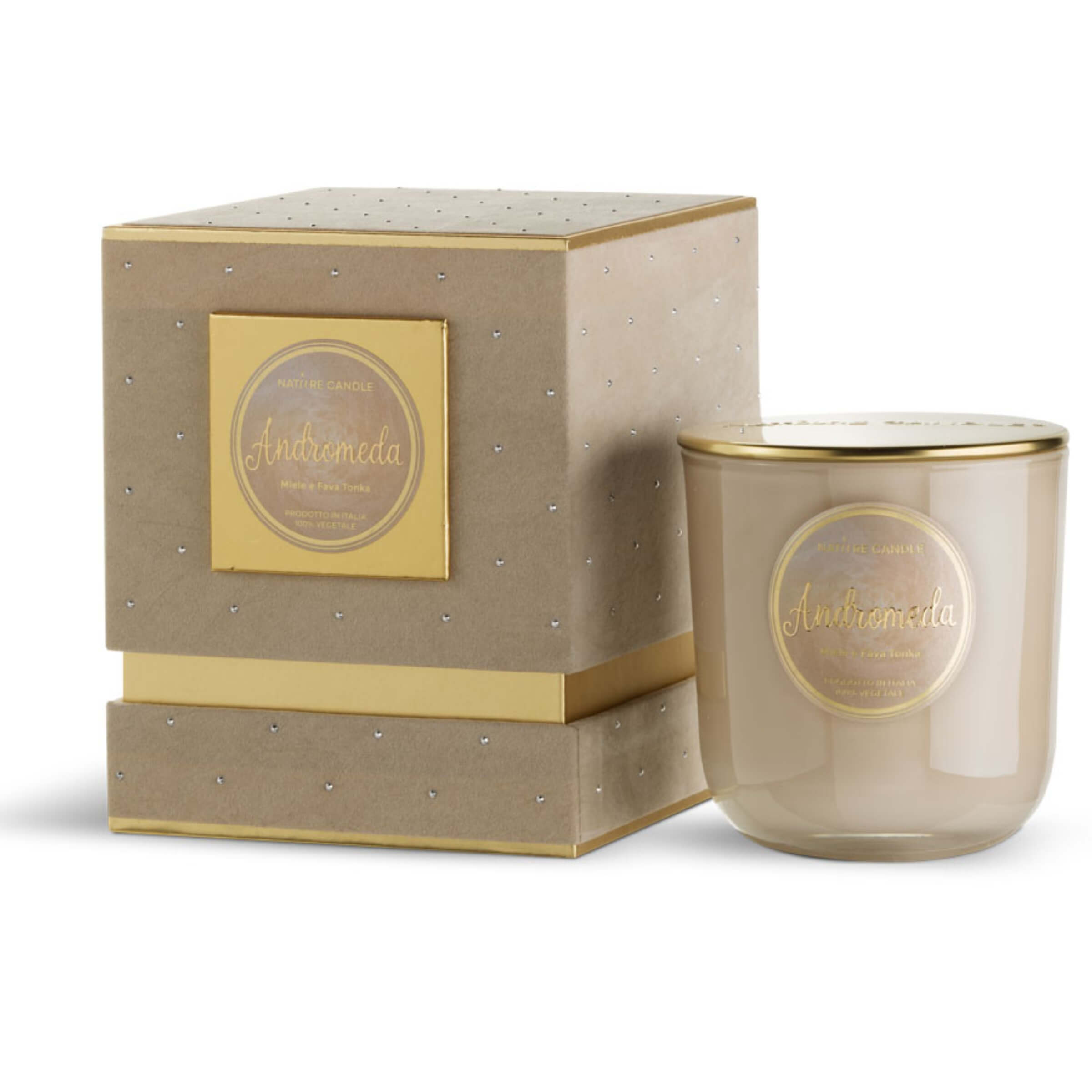La candela profumata Nature Candle Le Stelle Andromeda - Miele e Fava Tonka è un simbolo di eleganza e armonia, ispirata alla figura mitologica della principessa Andromeda, che nel cielo rappresenta coraggio, bellezza e purezza. Ogni dettaglio di questa creazione artigianale Made in Italy racconta una storia di luce e calore: la cera vegetale al 100%, la fragranza concentrata al 12% e la lavorazione manuale rendono questa candela un gioiello di profumeria d’ambiente capace di trasformare lo spazio in un rifugio di serenità.