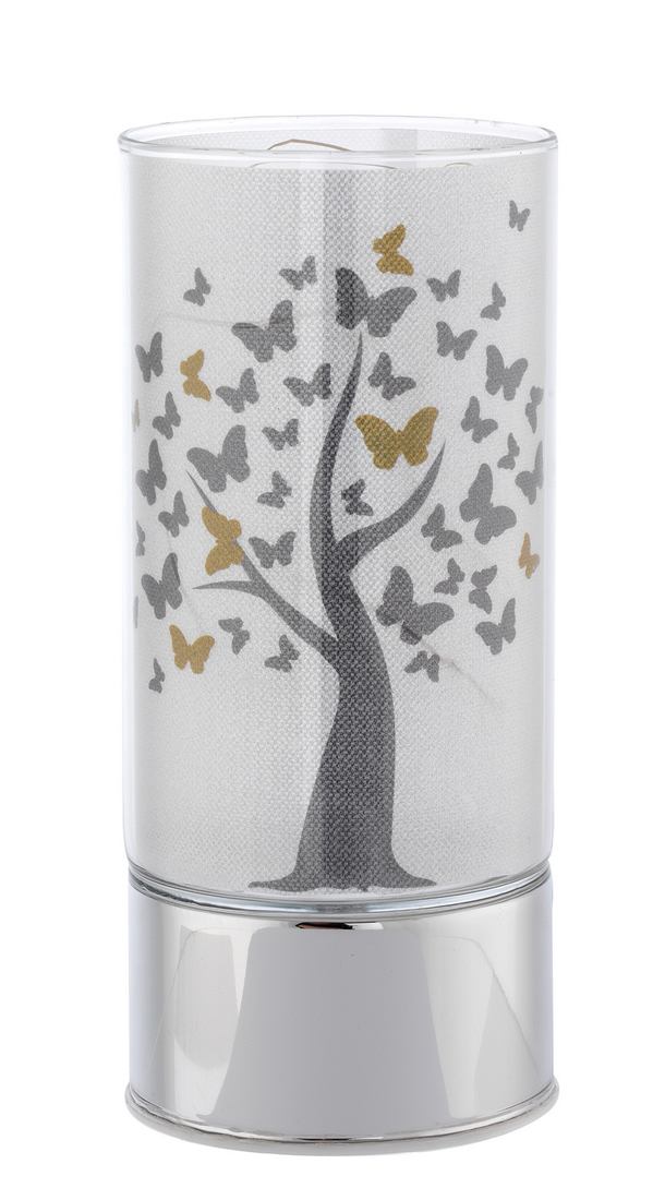 LAMPADA IN VETRO H. 20 CON DECORO ALBERO E FARFALLE