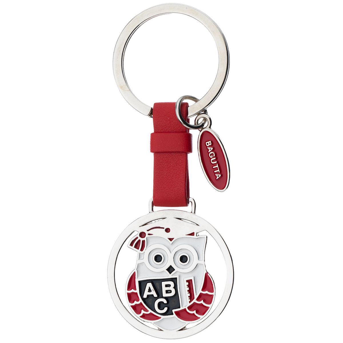 PORTACHIAVI PENDENTE CON FASCETTA ROSSA E GUFO LAUREA cm 9