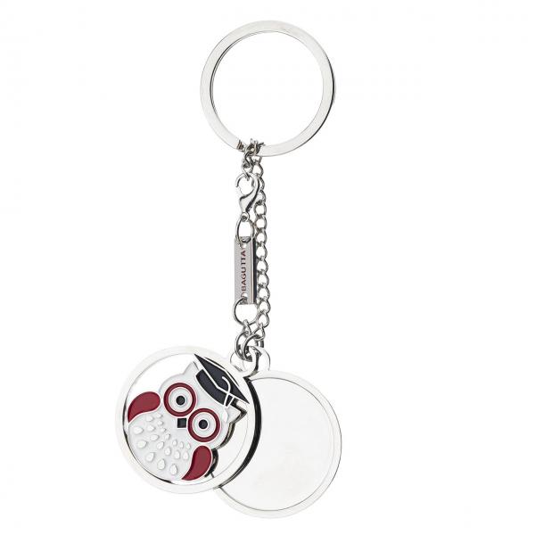 PORTACHIAVI PENDENTE CON FASCETTA ROSSA E GUFO LAUREA cm 9