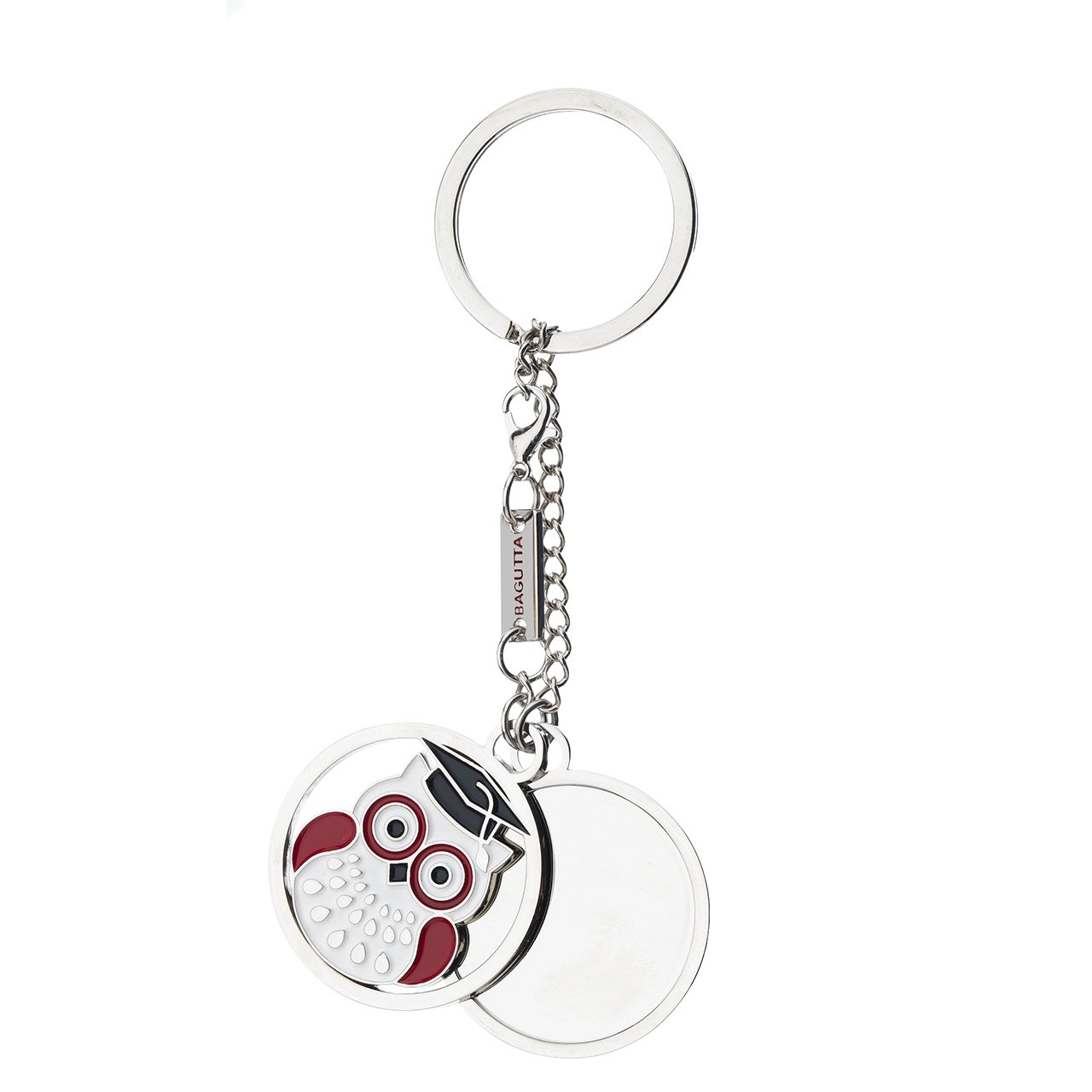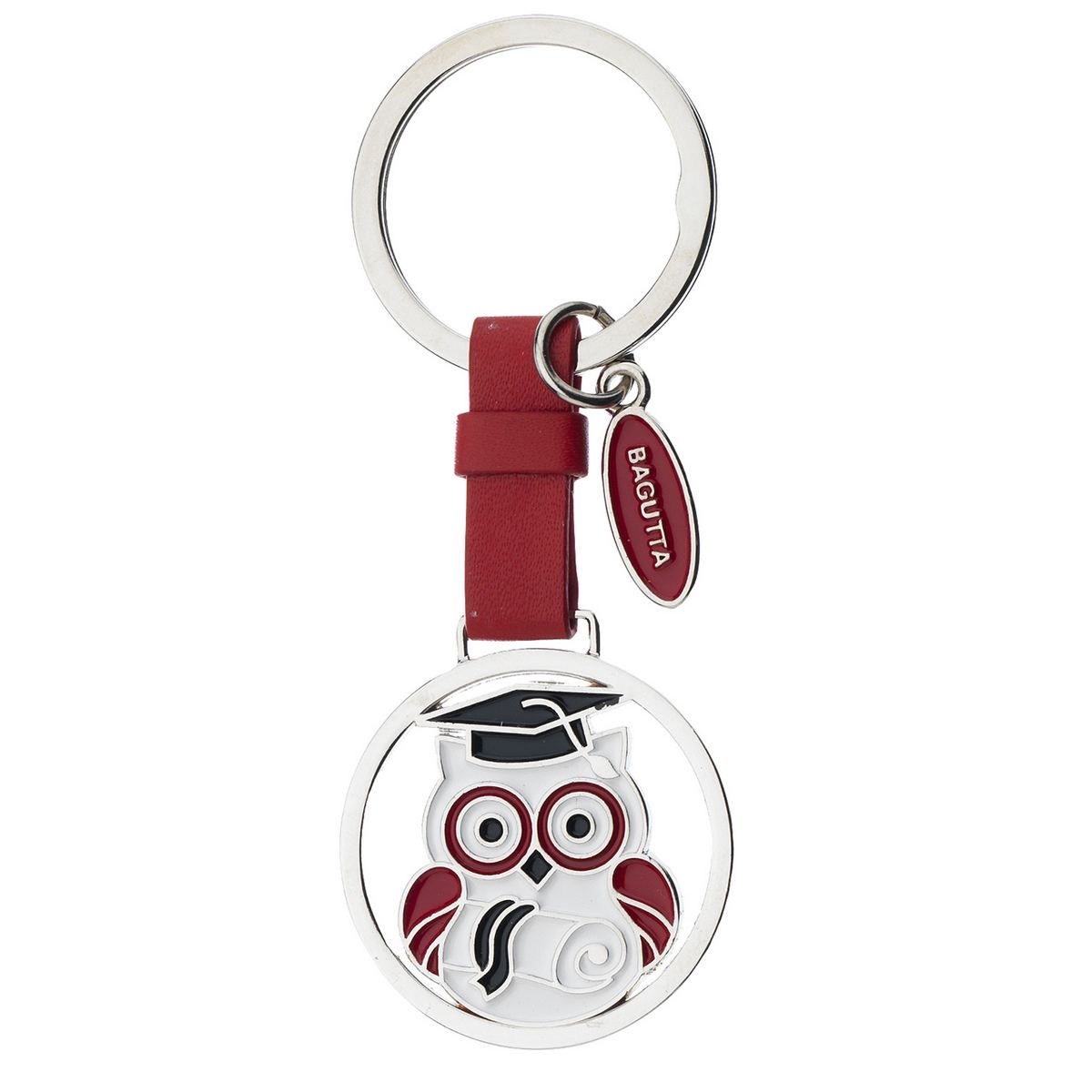 PORTACHIAVI PENDENTE CON FASCETTA ROSSA E GUFO LAUREA cm 9