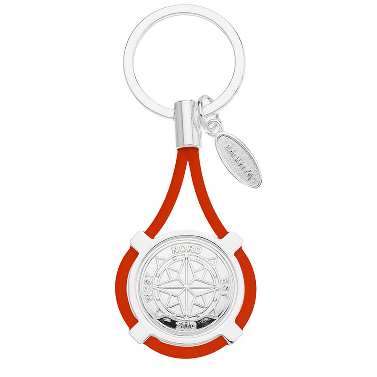 PORTACHIAVI CON ROSA DEI VENTI E CORDONE ARANCIONE cm 9,5