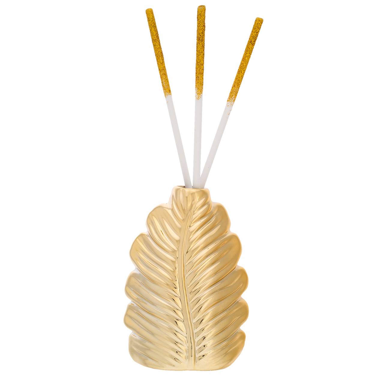 DIFFUSORE FOGLIA STILIZZATA DORATA h.10