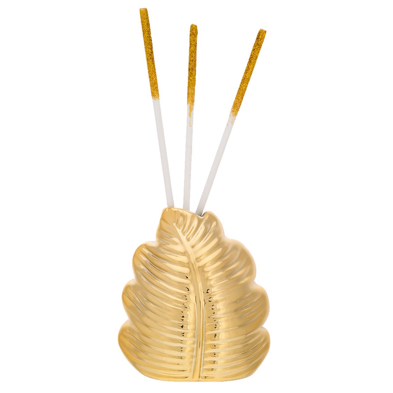 DIFFUSORE FOGLIA STILIZZATA DORATA h.9