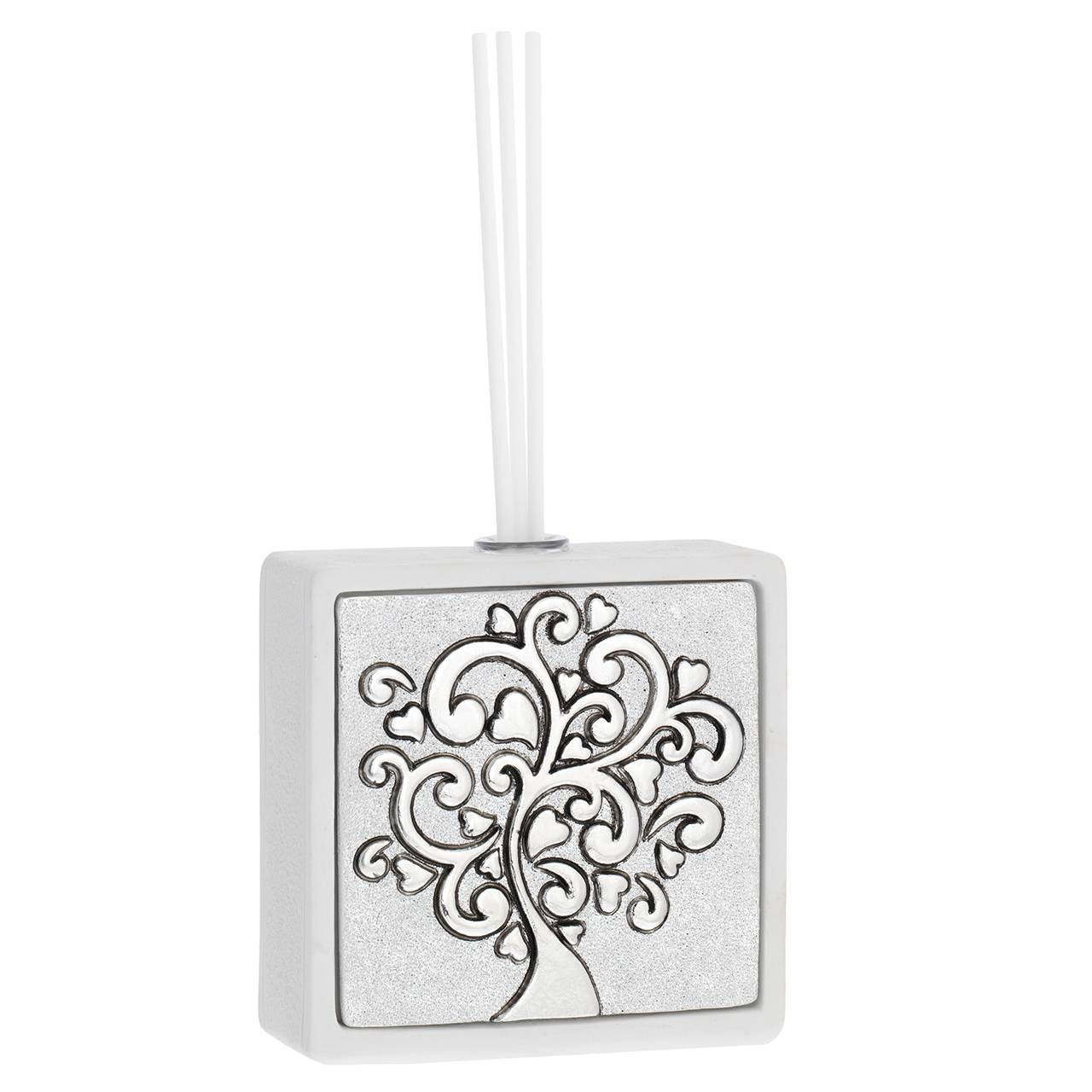 DIFFUSORE QUADRATO BIANCO 9,5*9,5 CON INSERTO ARGENTATO - ALBERO CUORI