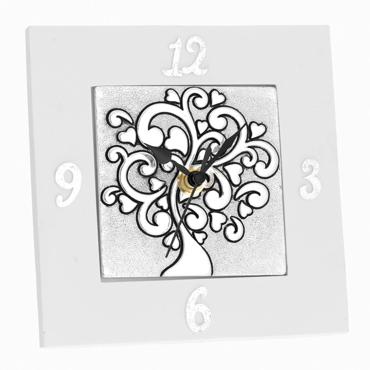 OROLOGIO QUADRATO 15*15 CON INSERTO ARGENTATO - ALBERO CUORI