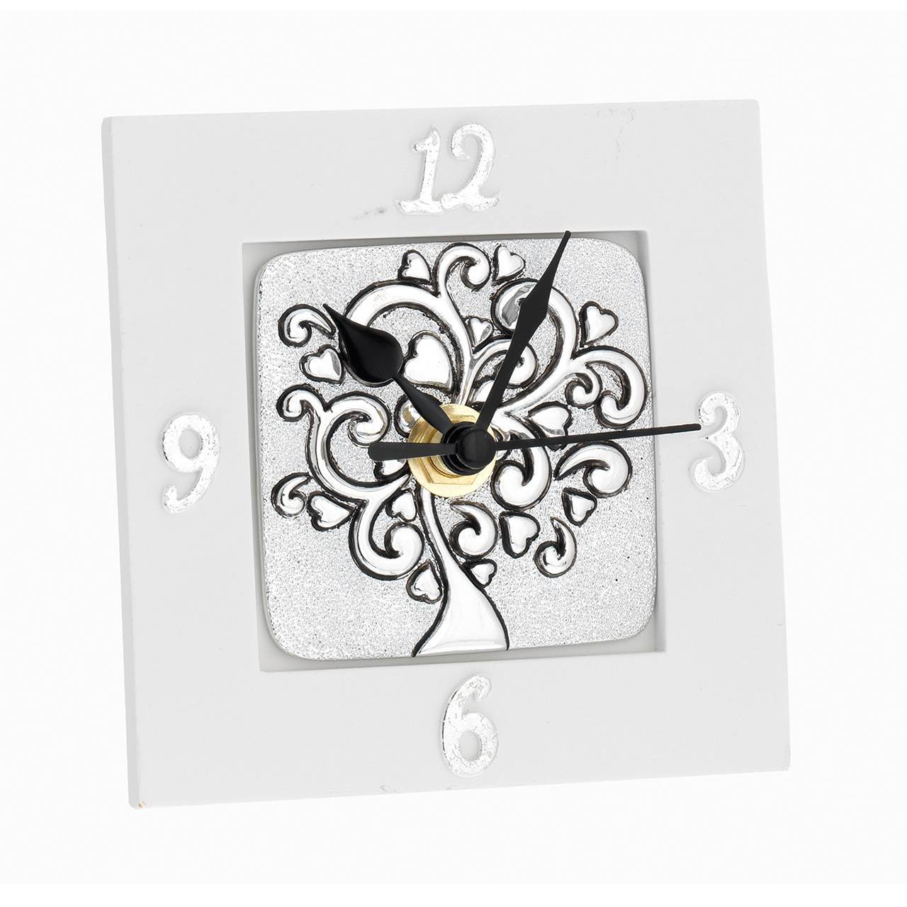 OROLOGIO QUADRATO 10*10 CON INSERTO ARGENTATO - ALBERO CUORI