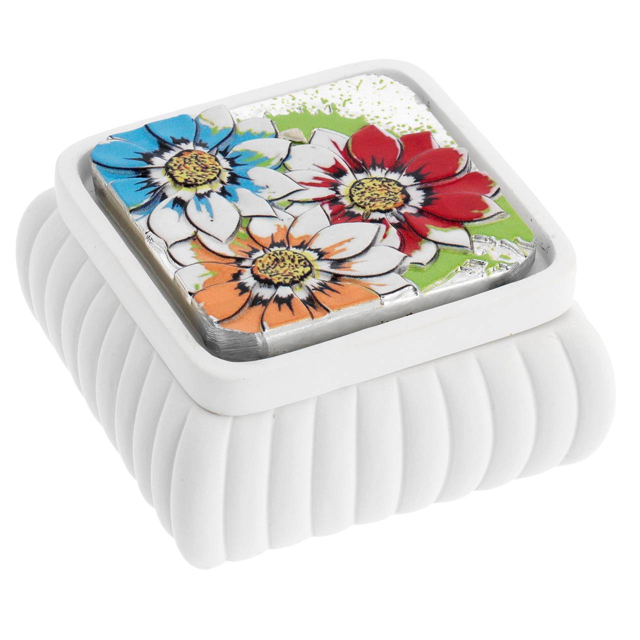 SCATOLINA QUADRATA BIANCA CON FESONI 8*8*4 CON DECO STAMPATA 1