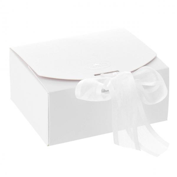 SCATOLINA QUADRATA BIANCA CON FESONI 8*8*4 CON DECO STAMPATA 1