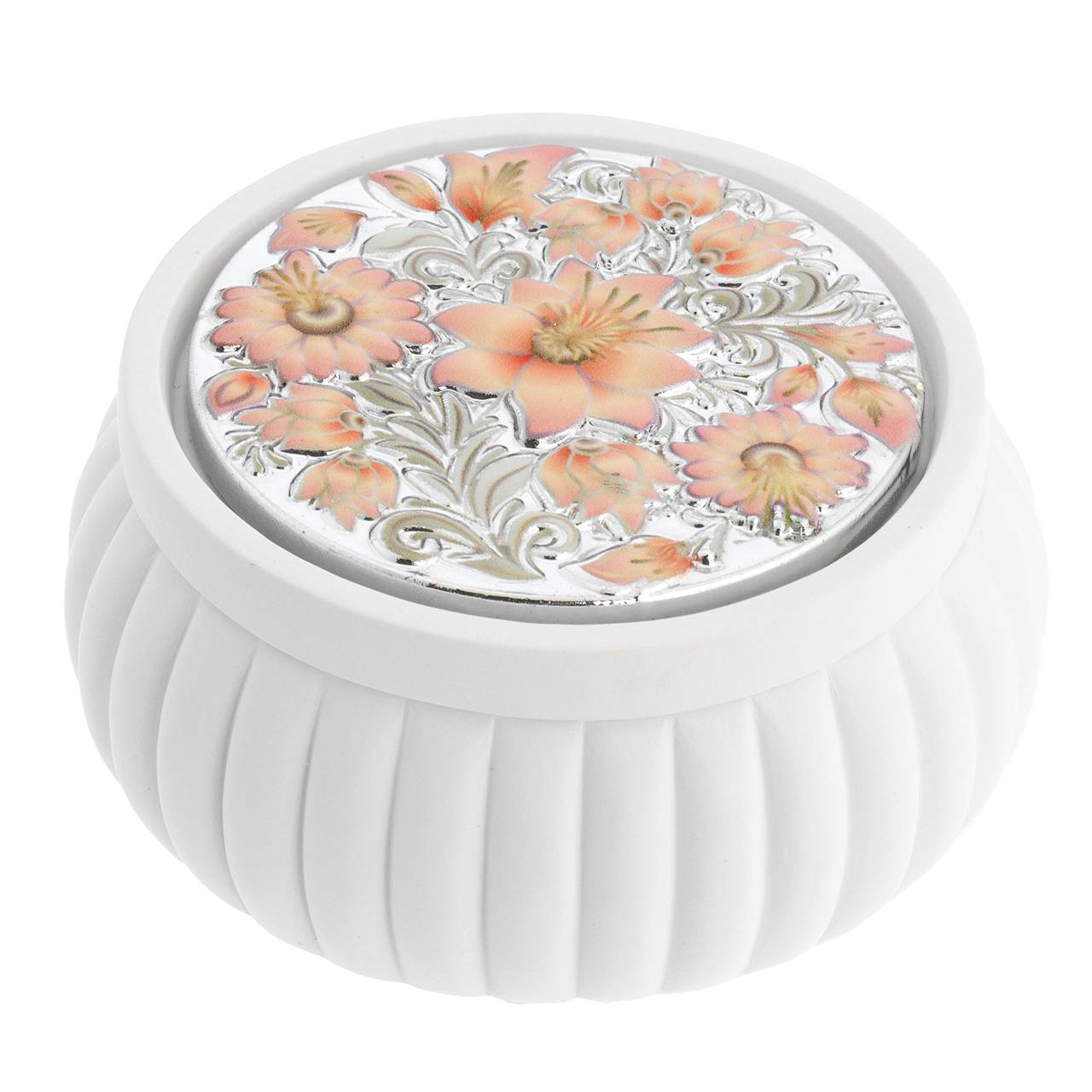 SCATOLINA TONDA BIANCA CON FESONI D. 8,5*4 CON DECO STAMPATA 1