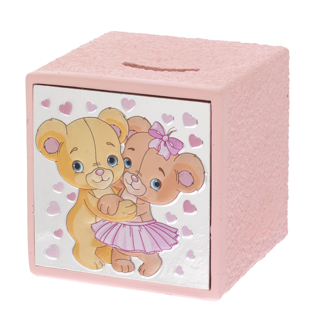 SALVADANAIO CUBO CON COPPIA ORSETTI ROSA