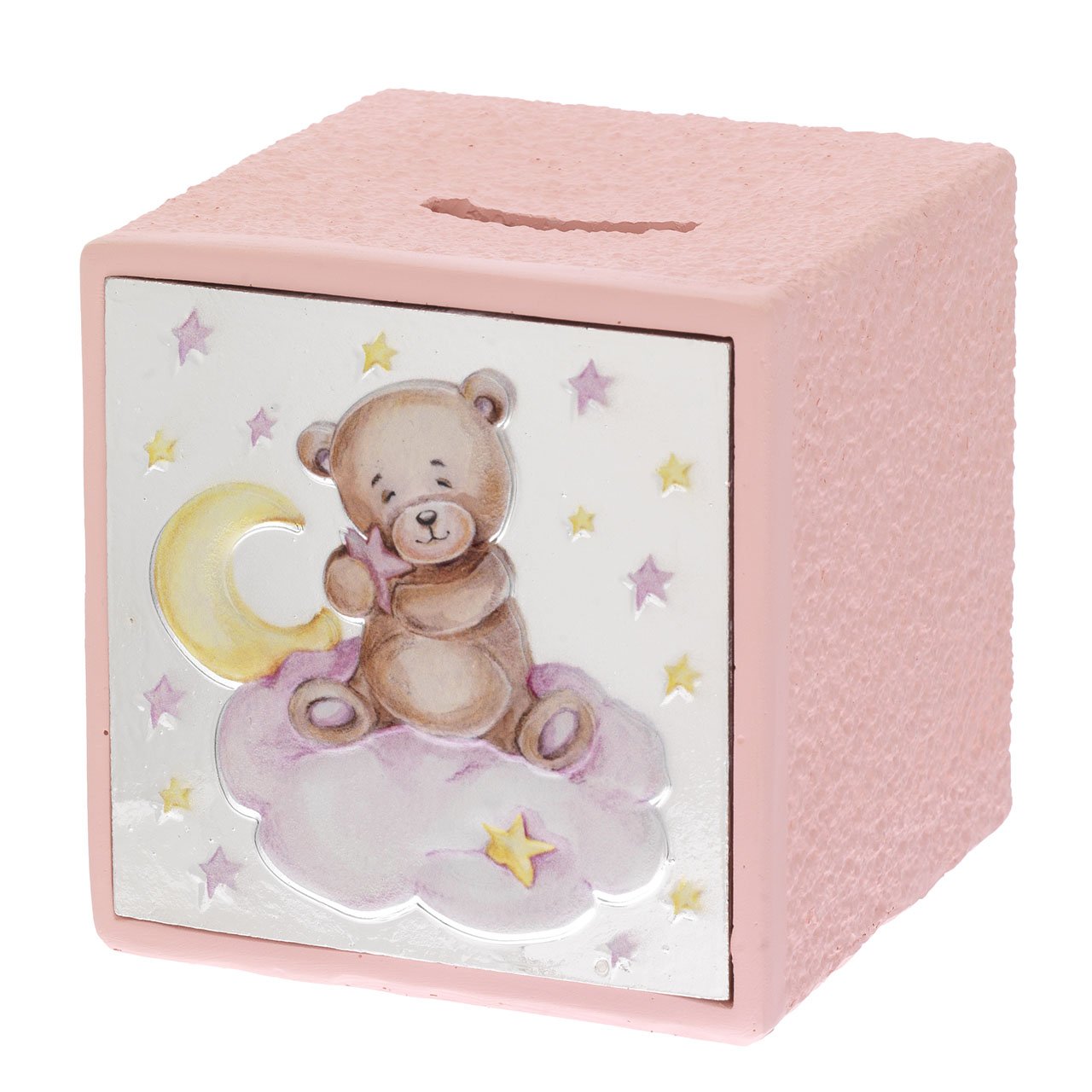 SALVADANAIO CUBO CON ORSETTO ROSA