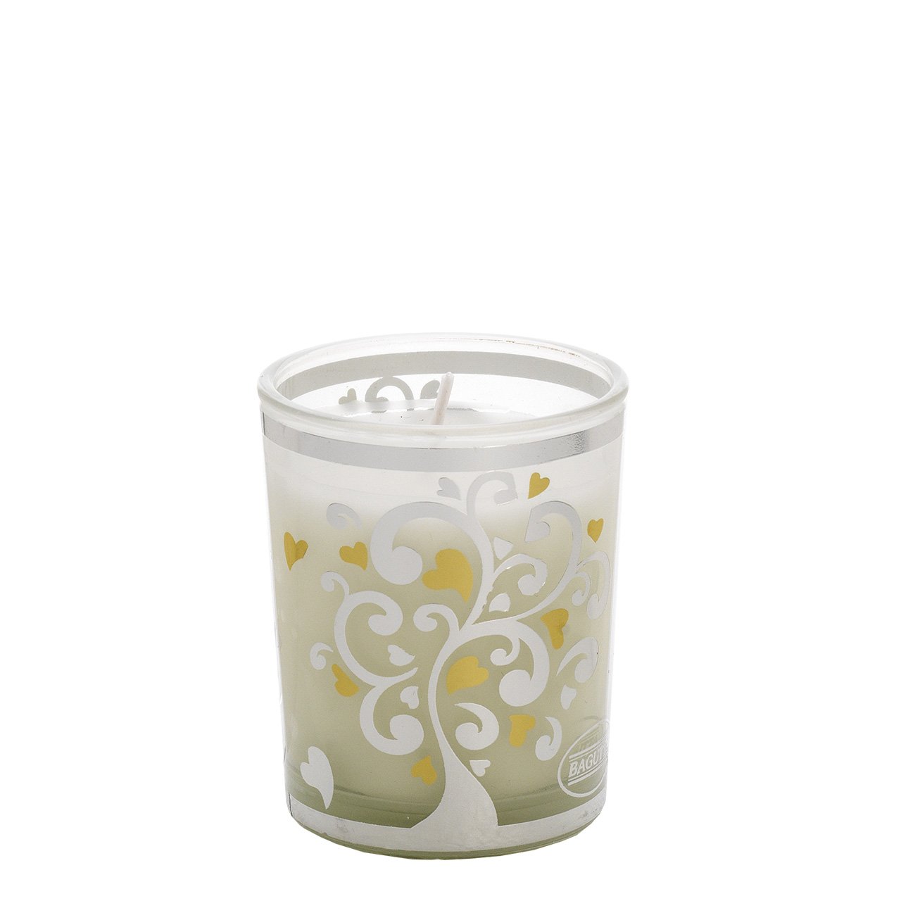 BICCHIERE CON CERA PROFUMATA 70gr - ALBERO CON CUORI BIANCO Vaniglia noir