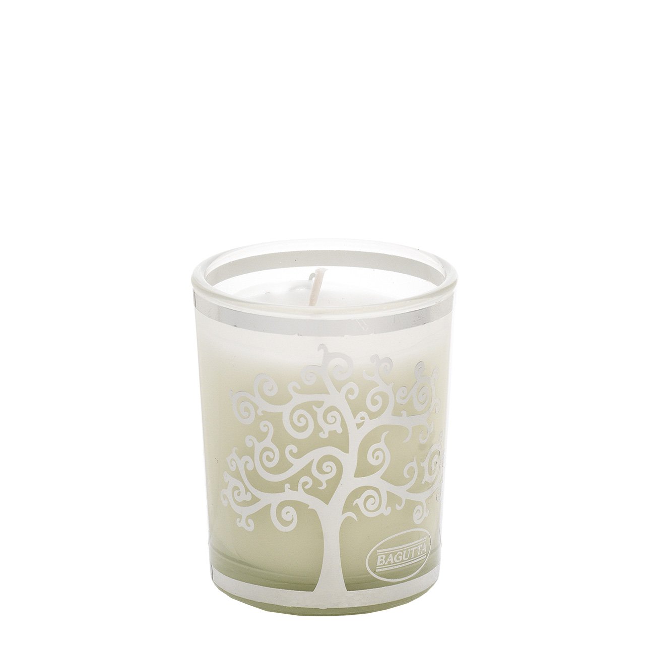 BICCHIERE CON CERA PROFUMATA 70gr - ALBERO STILIZZATO BIANCO Vaniglia noir