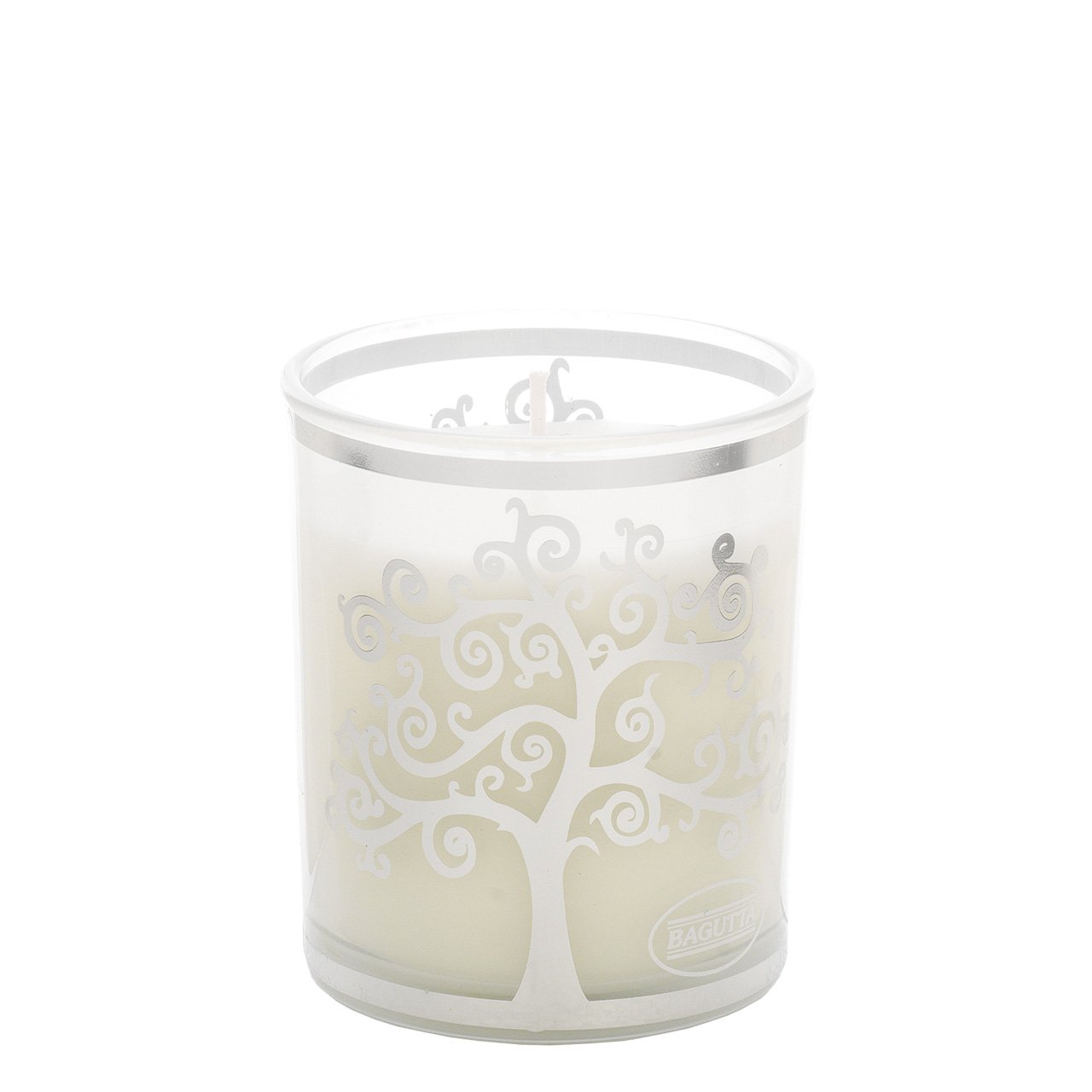 BICCHIERE CON CERA PROFUMATA 150gr - ALBERO STILIZZATO BIANCO Vaniglia noir