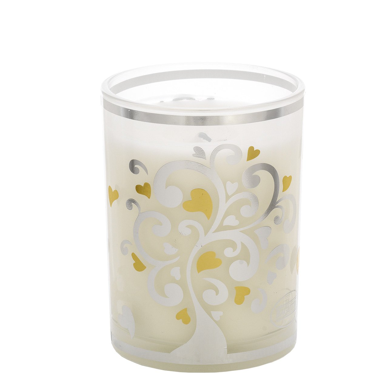 BICCHIERE CON CERA PROFUMATA 250gr - ALBERO CON CUORI BIANCO Vaniglia noir