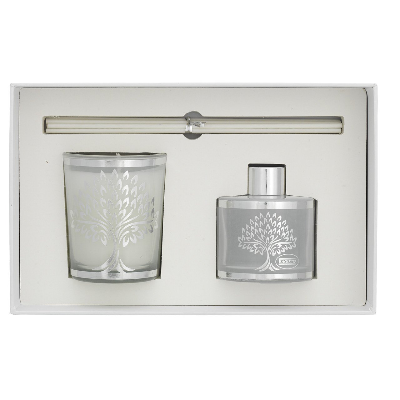ASTUCCIO CON 50ml + STICKS + CANDELA 70gr - ALBERO SPIGHE BIANCO Vaniglia noir
