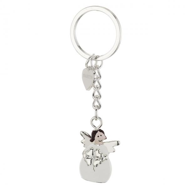 PORTACHIAVI ANGELO METALLO SILVER PLATED BIANCO CON QUADRIFOGLIO