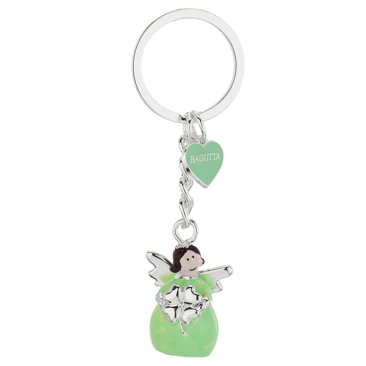 PORTACHIAVI ANGELO METALLO SILVER PLATED VERDE CON QUADRIFOGLIO