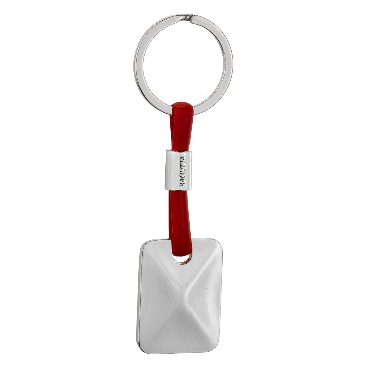 PORTACHIAVI SILVER PLATED CON TARGHETTA RETTANGOLARE CORDONE IN SILICONE ROSSO