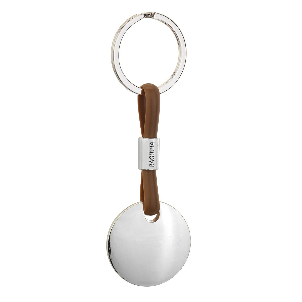 PORTACHIAVI SILVER PLATED CON TARGHETTA TONDA CORDONE IN SILICONE CREMA