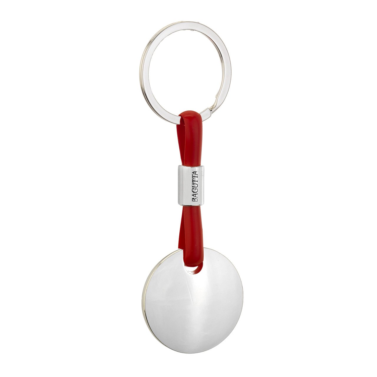 PORTACHIAVI SILVER PLATED CON TARGHETTA TONDA CORDONE IN SILICONE ROSSO