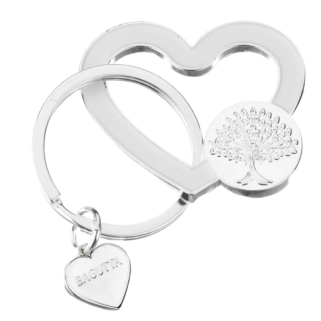 PORTACHIAVI SILVER PLATED CUORE SMALTATO BIANCO E ALBERO IN RILIEVO