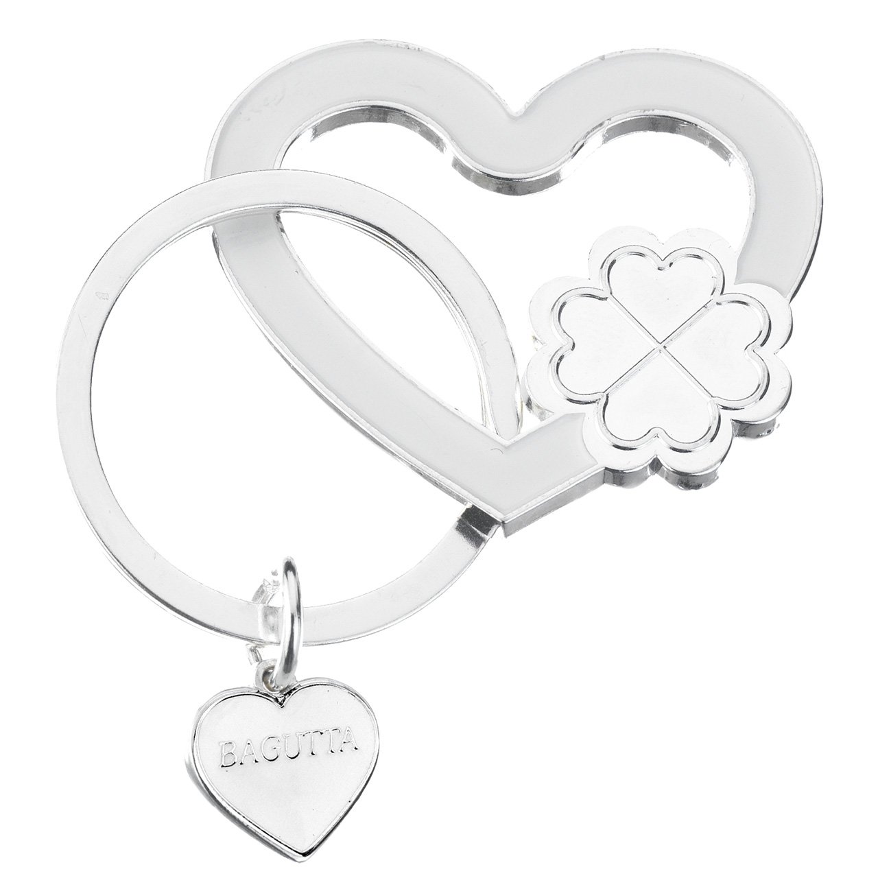 PORTACHIAVI SILVER PLATED CUORE SMALTATO BIANCO E QUADRIFOGLIO IN RILIEVO