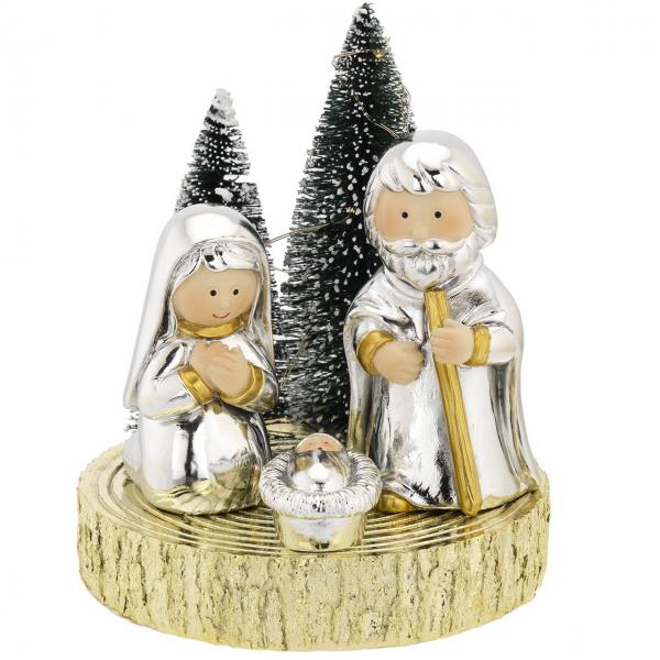 TRONCO D. 13x15 ORO con led e Presepe 3 pzi h. 100 argento