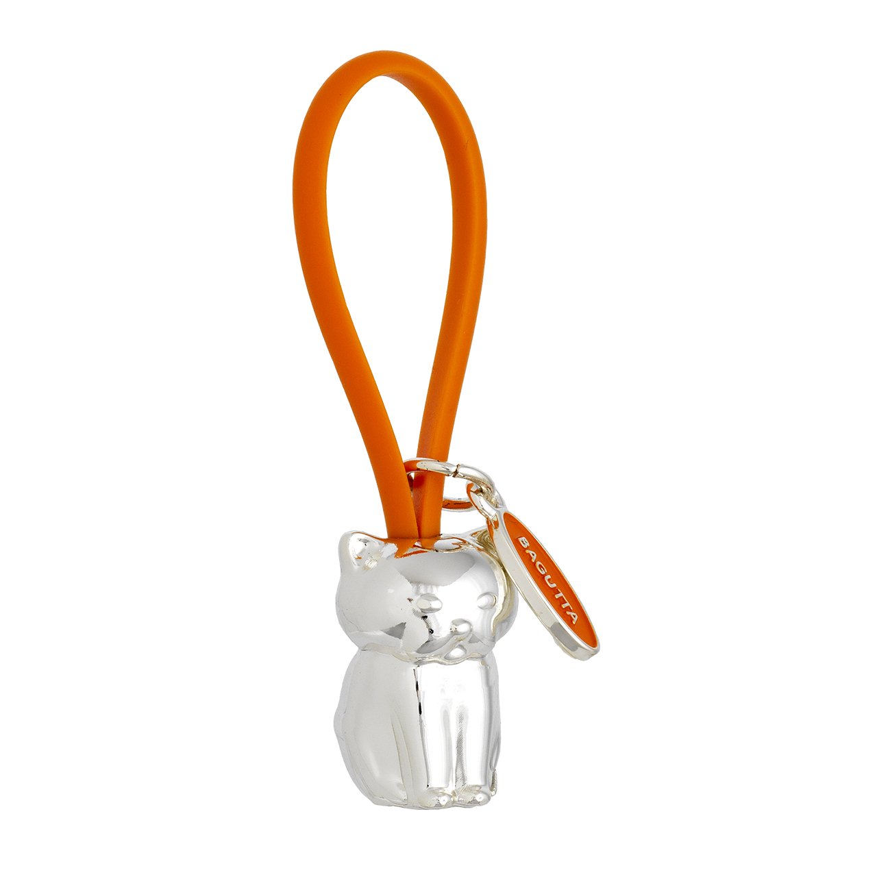 PORTACHIAVI GATTO ARGENTATO GANCIO IN SILICONE ARANCIONE E PENDENTE OVALE