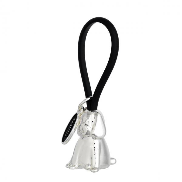 PORTACHIAVI CANE ARGENTATO GANCIO IN SILICONE NERO E PENDENTE OVALE