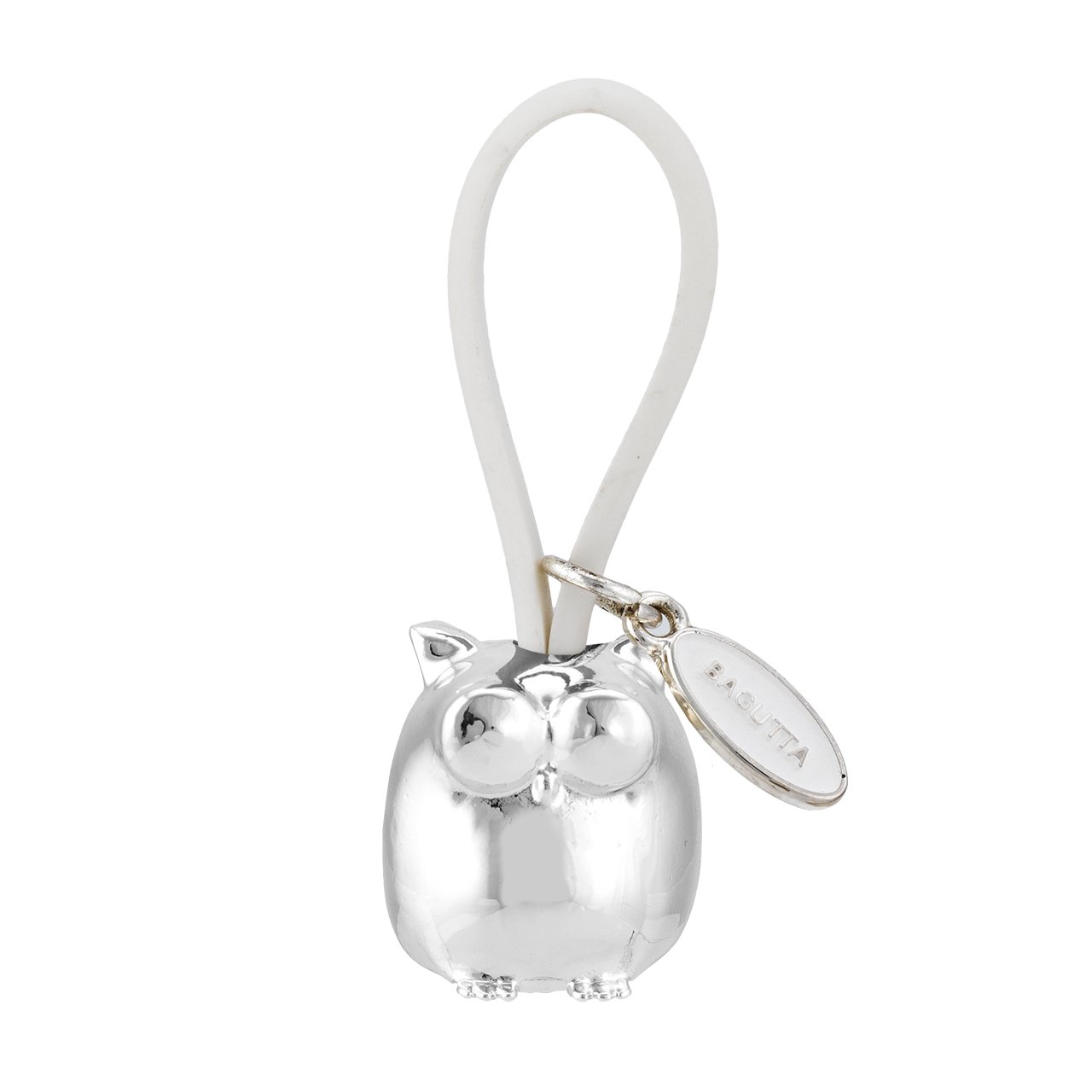 PORTACHIAVI GUFO ARGENTATO GANCIO IN SILICONE BIANCO E PENDENTE OVALE