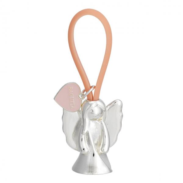 PORTACHIAVI ANGELO 2 SILVER PLATED GANCIO IN SILICONE ROSA E PENDENTE CUORE