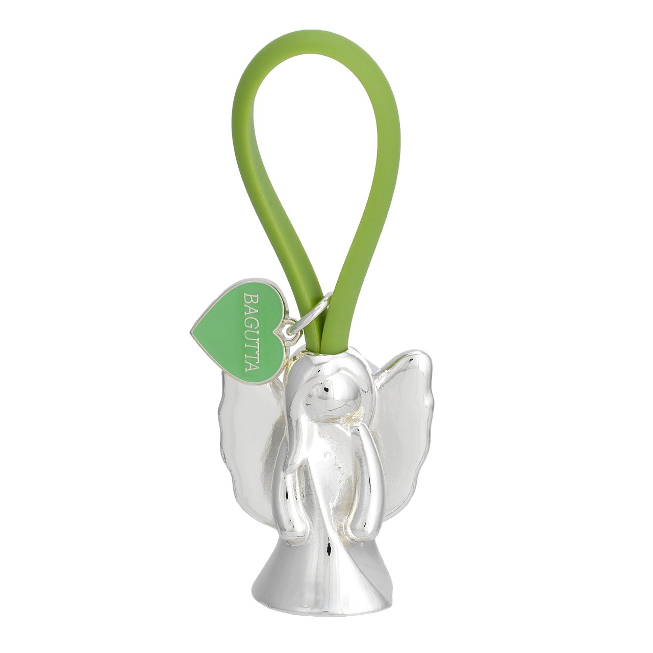 PORTACHIAVI ANGELO 2 SILVER PLATED GANCIO IN SILICONE VERDE E PENDENTE CUORE