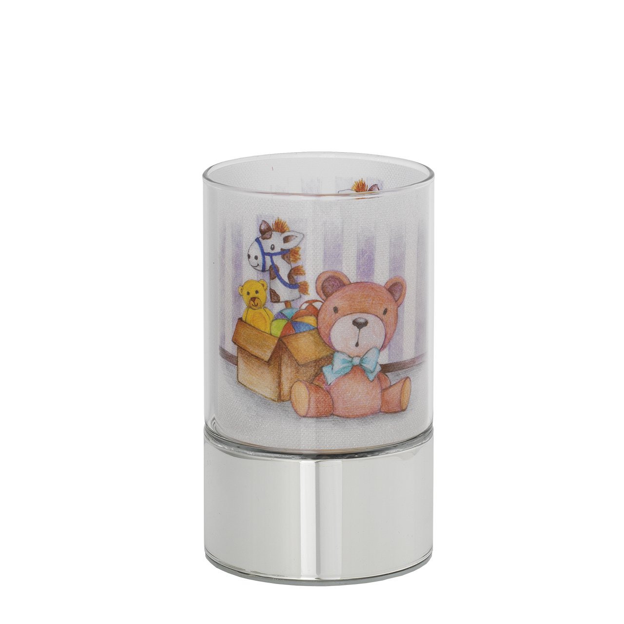 LAMPADA IN VETRO H. 15 CON DECORO SCATOLA GIOCHI