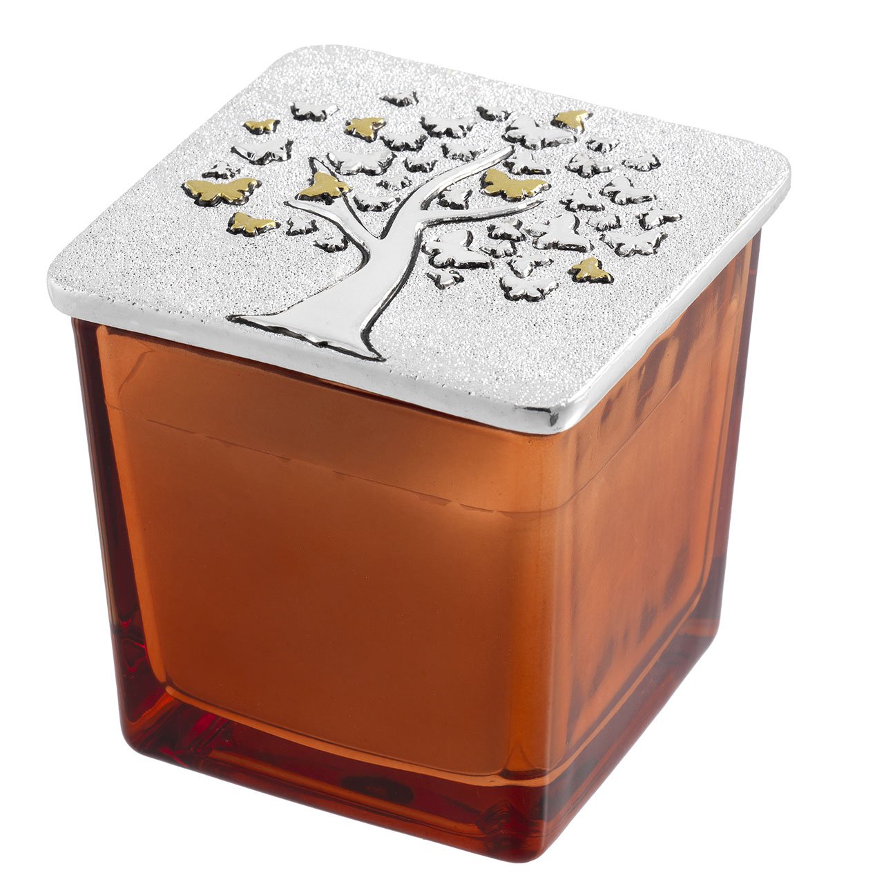 VASETTO QUADRATO 80x80 200 gr. CON COPERCHIO ARGENTATO ALBERO