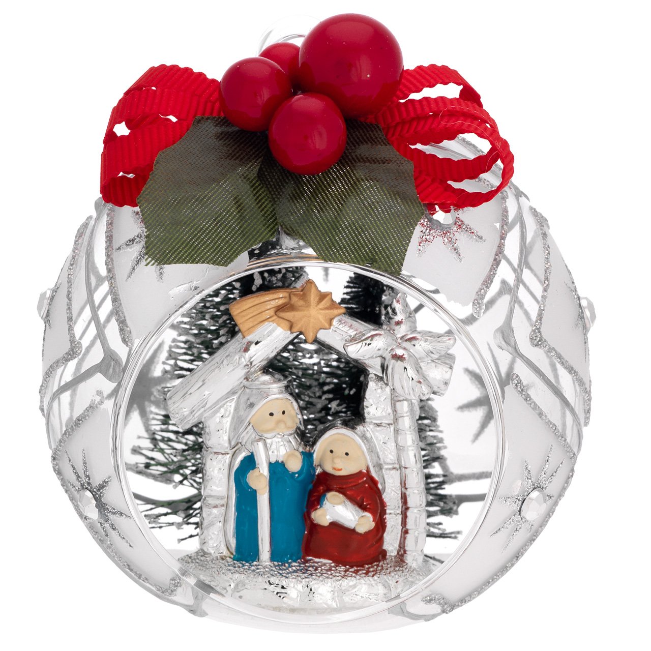 SFERA D. 8 DECO ARGENTO CON ALBERELLI E FIOCCO - PRESEPE