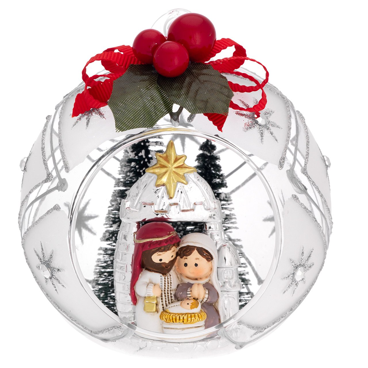 SFERA D. 10 DECO ARGENTO CON ALBERELLI E FIOCCO - PRESEPE