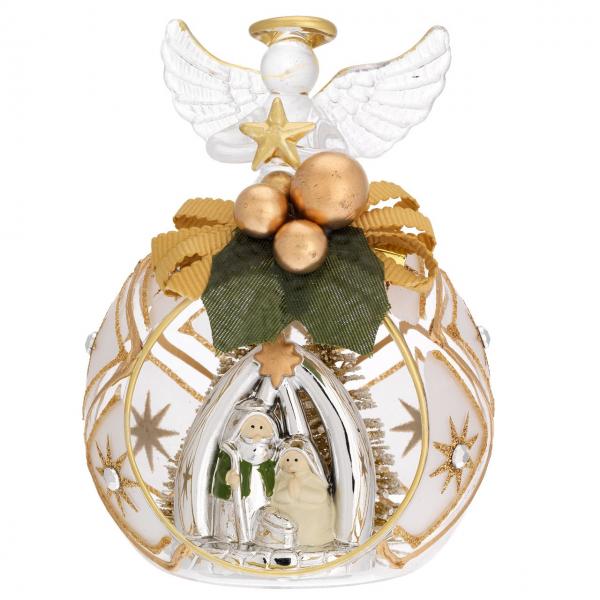 SFERA CON ANGELO D. 8 DECO ORO CON FIOCCO ALBERELLI E PRESEPE